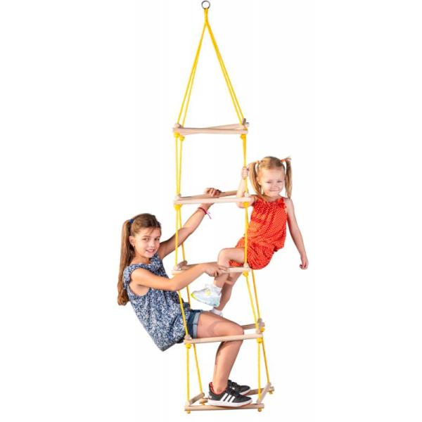 Čtyřhranný provazový žebřík je vyroben z masivních dřevěných tyčí a pevných lan. Je vhodný do exteriéru i interiéru. K zavěšení na bezpečnostní (nejlépe točivý) hák (není součástí balení). Nosnost: 60 kg. Rozměr: 40 x 40 x 195 cm. Rozměr balení: 21 x 21 x 45 cm. Věk: 3