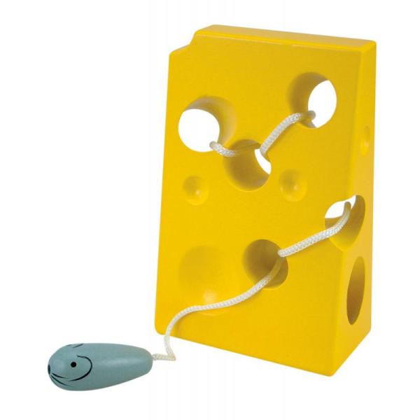 Provlékačka Sýr s myškou Provlékačka je dřevěná hračka pro děti ve tvaru sýra s dírkami, přes které se provléká malá dřevěná myška se provázkem. Výborná hračka na procvičování jemné motoriky dítěte. velikost: 12 x 5 x 5,5 cm Hračka je vhodná od 3 let.