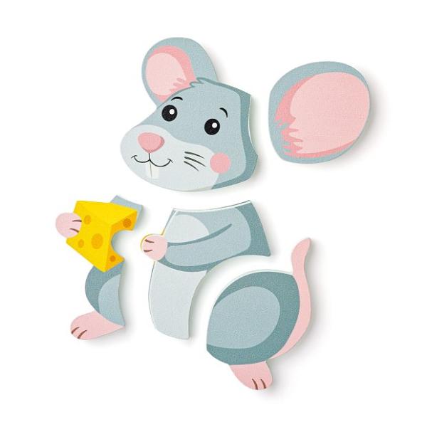 Vynikající edukační hračka pro nejmenší. Tato barevná a atraktivní sada puzzle se skládá ze 3 dílků s motivem roztomilé myšky, která upoutá pozornost dětí a podněcuje jejich kreativitu.