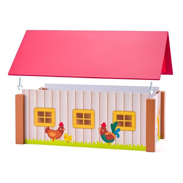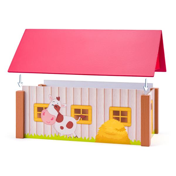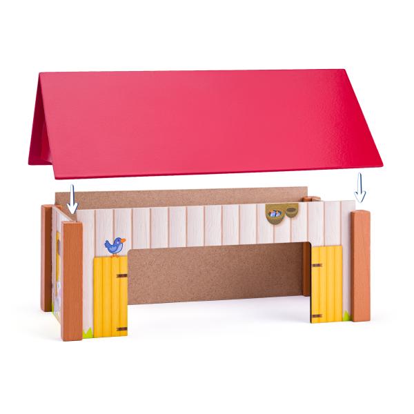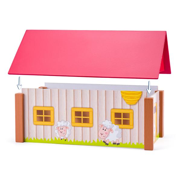 Tento krásný dřevěný statek potěší všechny malé milovníky zvířat a venkovského života. Sada obsahuje tři domečky se snímatelnou střechou a hrací desku složenou ze dvou částí, které společně vytvářejí pestrou farmu plnou života. Ilustrace od české autorky s motivy zvířat, statku a přírody podněcují dětskou fantazii a nabádají k kreativnímu hraní. Domečky jsou vyrobeny z kvalitního dřeva a papíru, jemně zaoblené hrany a pestré barvy zaručují bezpečnost i dlouhou životnost hračky. Tato sada vytváří dokonalé prostředí pro hraní s figurkami. Rozměry domečku se střechou: 16,5 x 27 x 16 cm. Rozměry hrací plochy: 60 x 44 cm. Rozměry balení: 33 x 45 x 15 cm. Věk: 3+