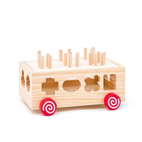 Kromě klasické tahací hračky je úkolem dítěte rozpoznat a vložit tvar správnými otvory dovnitř.