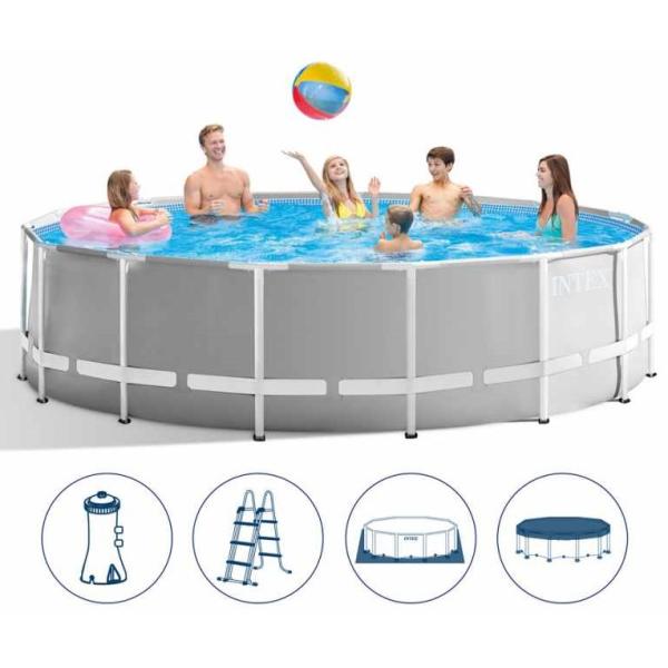 Zahradní bazén INTEX 26724 Prism Frame 457 x 107 cm s kartušovou filtrací Bazén Intex Prism Frame nadzemní bazén, v kterém si skutečně zaplavete? Bazén Intex Prism Frame je ideální volbou. Mezi jeho nesporné výhody patří jednoduchá montáž, stabilní konstrukce – nově vyvinutý unikátní kovový rám a příjemný design. Relaxujte v našich bazénech Intex Prism Frame. MATERIAL A KVALITA: Je vyroben z trojvrstvého PVC SUPER-TOUGH® a má pevné vinylové dno. Tento velmi pevný materiál se skládá z polyesterové podkladové tkaniny se silným, oboustranně laminovanými PVC. SUPER-TOUGH® je odolný proti slané vodě a obzvláště odolný proti oděru, nárazu a slunečnímu záření. Stačí jen postavit konstrukci a napustit vodou. Vypouštění zajišťuje vypouštěcí ventil. PROPOJENÍ BAZÉNU A FILTRACE: K bazénu je dodávána kartušová filtrace Intex s výkonem 3,785 m3 / hod., Včetně hadic TECHNOLOGIE HYDRO AERATION: Bazén je vybaven technologií „Hydro Aeration Technology“ – speciální nástavec vytváří bubliny, které provzdušňují vodu. Toto je inovace v oblasti čištění vody v bazénu. Smícháním vzduchu s vodou způsobuje provzdušňování oxidaci železa a manganu, čímž se odstraňují nečistoty ve vodě. Výsledkem je šumivá voda v bazénu, která výborně vypadá! KONSTRUKCE: Konstrukce této bazénové série odoláva rzi a korozi, sériově se dodává s práškovou povrchovou úpravou. Všechny hrany jsou zaoblené, aby se předešlo nebezpečí případného poranění u dětí. Nový model konstrukce – kompozitní T- DÍL (bez kolíkového spojování). Zjednodušená montáž už žádné vkládání zajišťovacích kolíků (nehrozí už žádné zlomení nebo ztráta kolíků), rám konstrukce se jednoduše zasune do T-DÍLU a vytvoří pevný a voděodolný spoj. Zabraňuje vnitřní korozi konstrukce materiálu. PARAMETRY BAZÉNU: