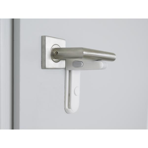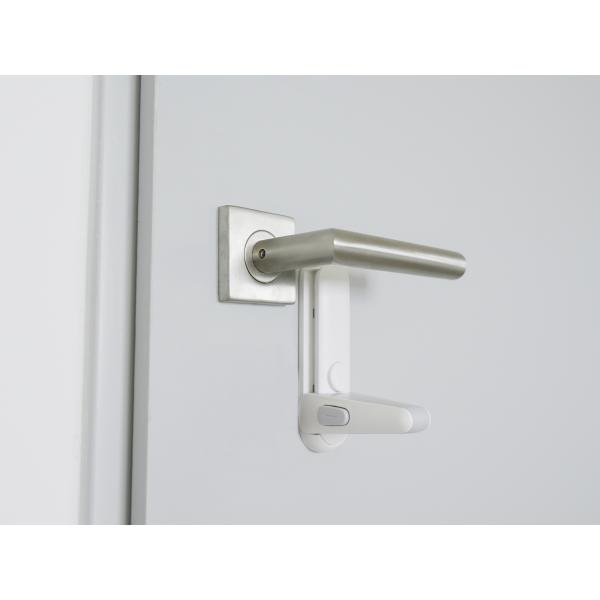 Bezpečný domov Praktický zámek umožňuje zablokovat kliku a zabránit tak otevření dveří do určité místnosti. Jednoduchá instalace probíhá pomocí 3M lepicí pásky. Zablokování kliky Jednoduchá instalace