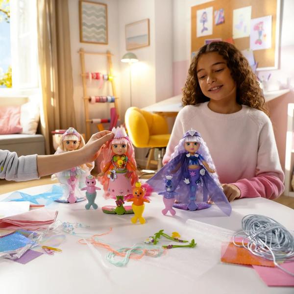 Vítejte ve světě BABY born Glam Up! Všechno je o kreativitě, třpytkách a nekonečných možnostech stylingu. Mořské panny Glam Up zvou děti, aby prožily svou fantazii a navrhly každý detail individuálně – vždy nové a odlišné. Třpytivá mořská panna miluje proměny a hraní si s barvami. Od hlavy po ploutev si ji můžete upravovat, zdobit a dekorovat podle libosti – podle vlastního stylu. S přiloženými látkovými doplňky, barevnými pinzetkami a roztomilým zvířecím kamarádem s odnímatelnou ploutví vznikají vždy nové vzhledy. Přiložená brožurka inspiruje k dalším nápadům – i s materiály, které mají děti doma. Obzvlášť magické: Třpytivé dlouhé blond vlasy mění barvu na slunci a vytvářejí skutečný wow efekt. Ať už jde o třpytivé účesy, kreativní dekorace nebo nápadité hraní rolí – s BABY born Glam Up Sparkle děti objevují nekonečné možnosti designu a nechávají svou kreativitu uzdu.