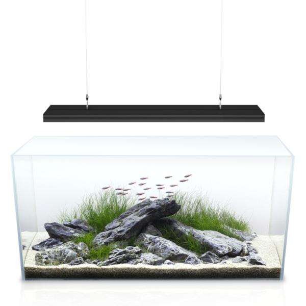 Při zavěšení se o to vůbec nemusíte starat, svítidlo jednoduše zavěsíte, a to buď ze stropu, nebo například z police nad akváriem, a nejste omezeni délkou akvária.