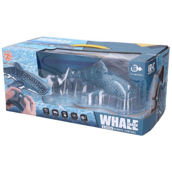 Žralok obrovský RC do vody. Velikost 35 cm. Frekvence 2,4 GHz. 1 rotor na každé straně pod předními ploutvemi (celkem 2 rotory). USB nabíječka v balení. Pohyb dopředu a zatáčení do stran.