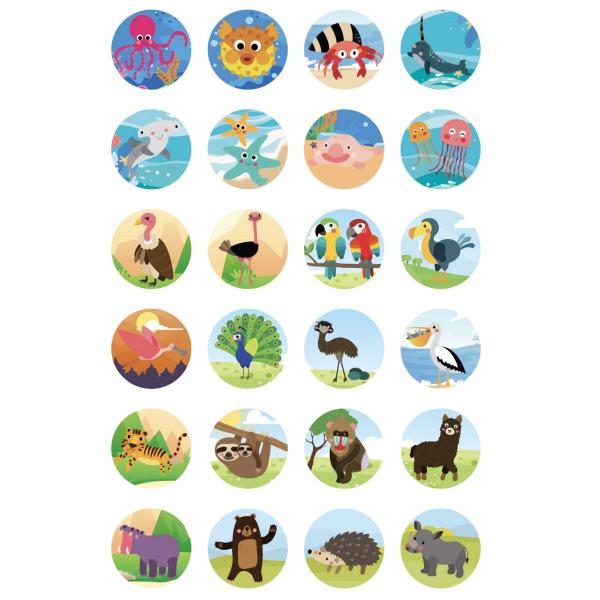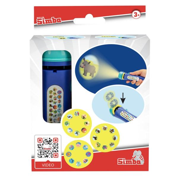 Světelný LED projektor obsahuje 3 diapozitivy po 8 motivů zvířátek na promítání např. na zeď. Velikost projektoru 12 cm.